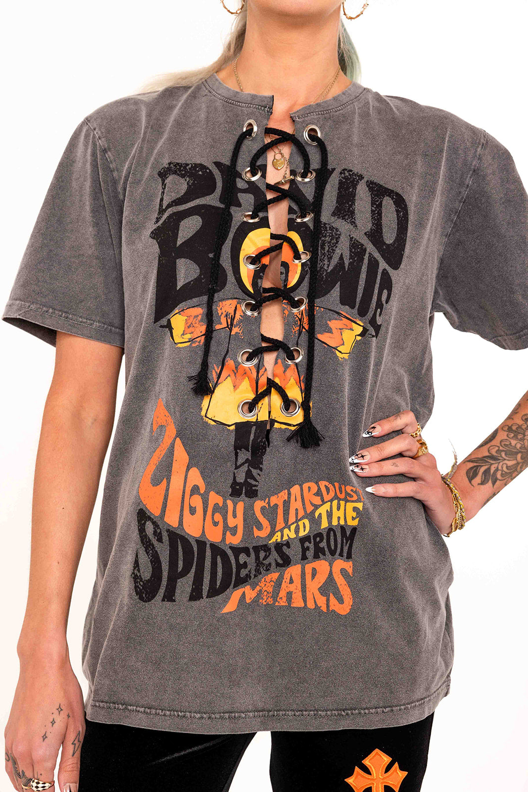 Bowie - Washed out - Ziggy Stardust - Lace Up T-shirt