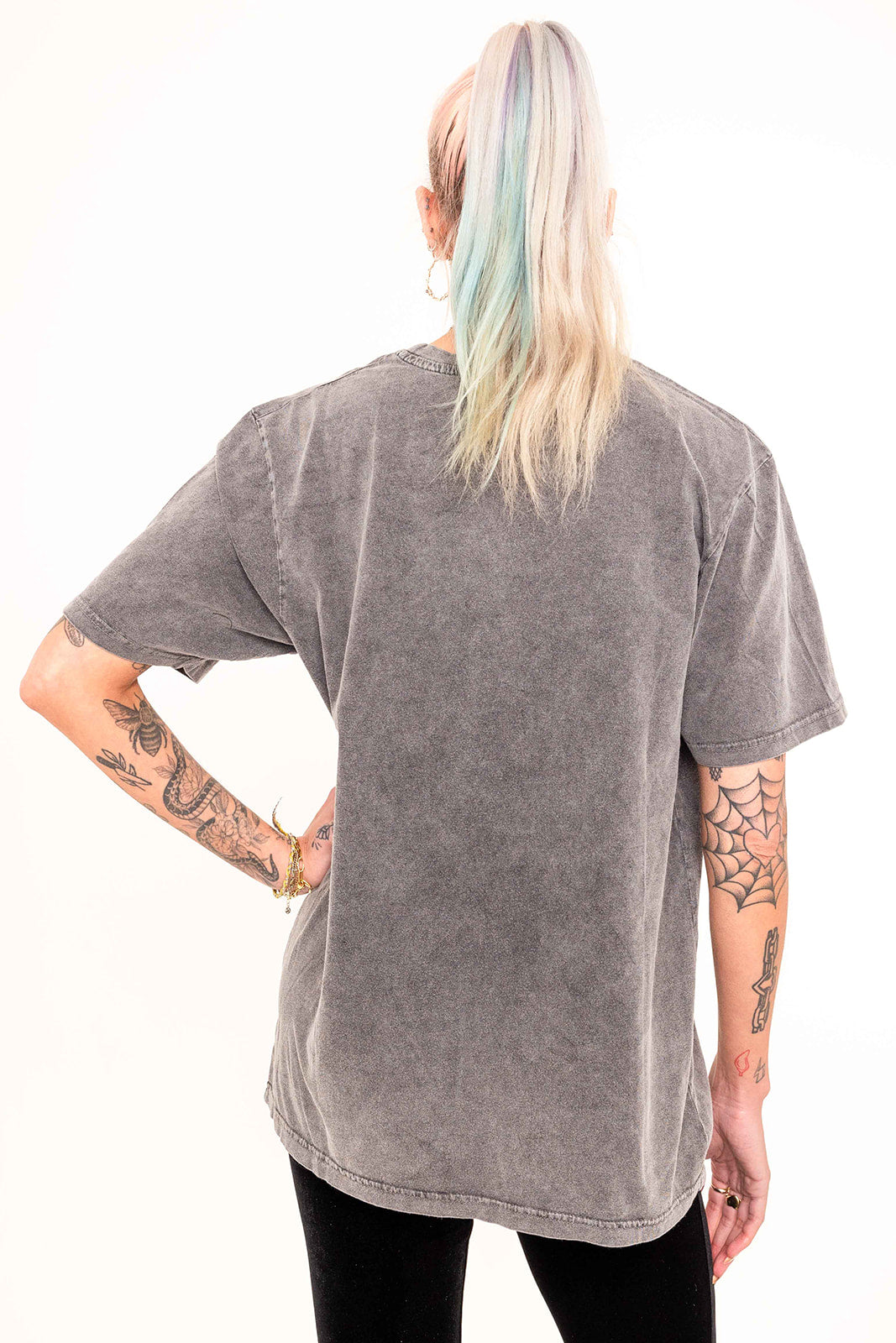 Super soft tee with large chest screen print and adjustable lace up detail.