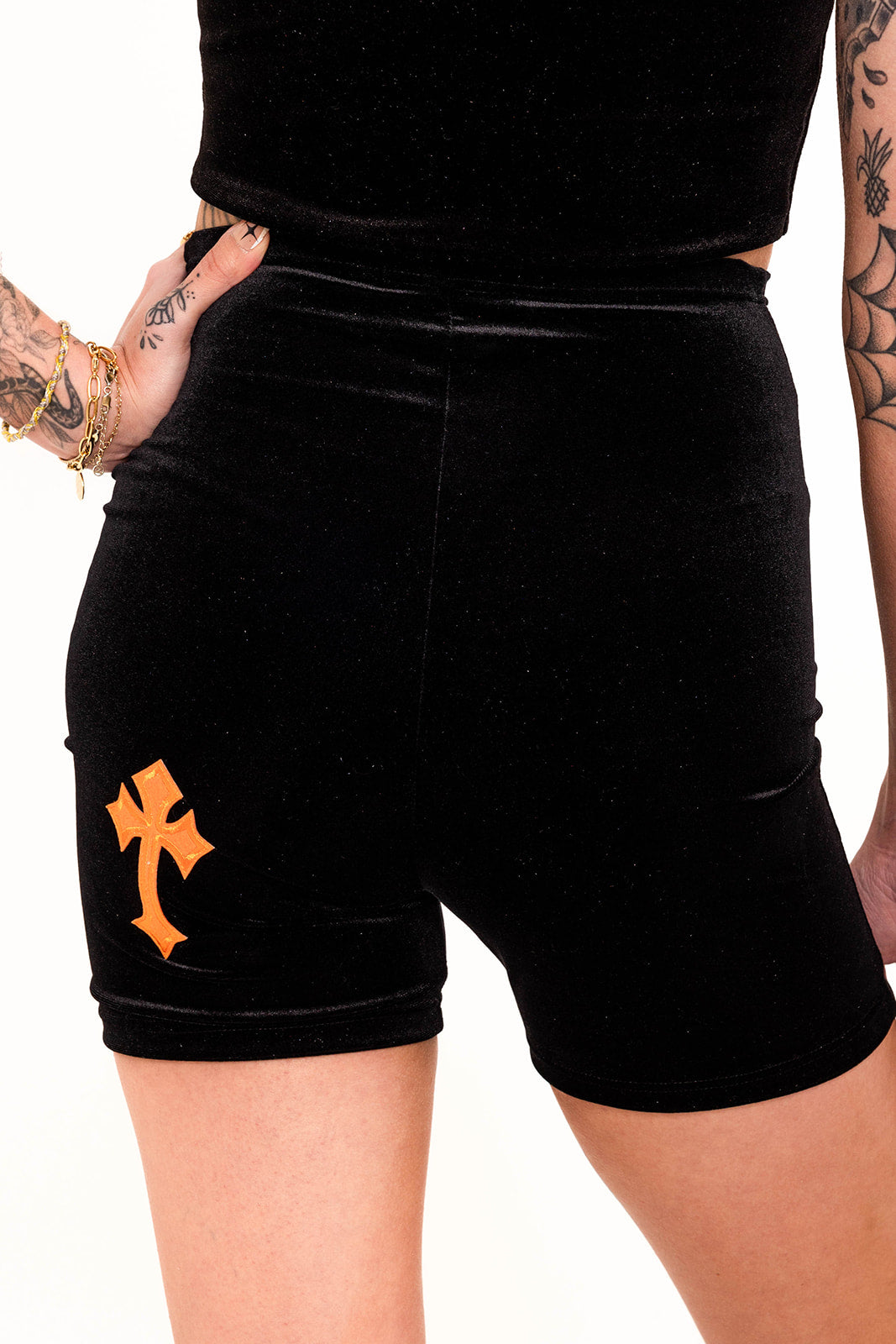Made from luxurious stretch velvet and featuring front lace-up eyelets, the Stevie Shorts are comfortable and adjustable.