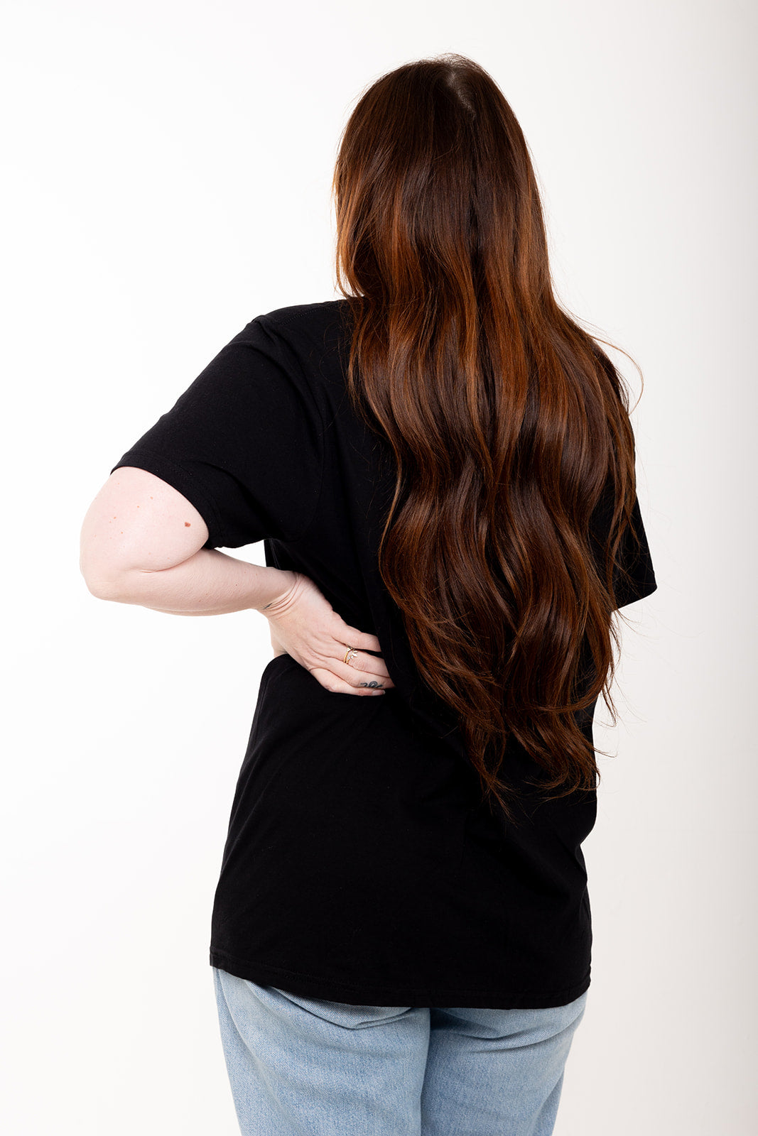 Super soft tee with large chest screen print and adjustable lace up detail.